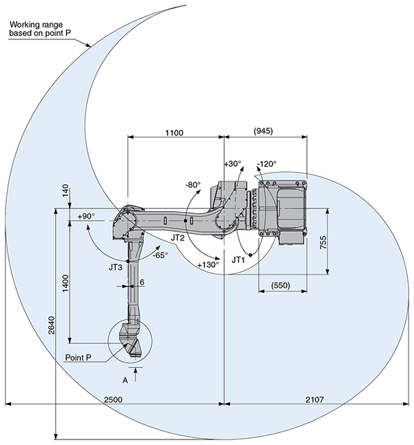 Покрасочный робот KJ264 для настенного монтажа оснащен компактным и легким корпусом, полым запястьем 3R (Roll, Roll, Roll) с внутренним диаметром 70 мм для размещения шлангов имеет широкую амплитуду движений. Оборудование по покраске может быть смонтировано на руку.